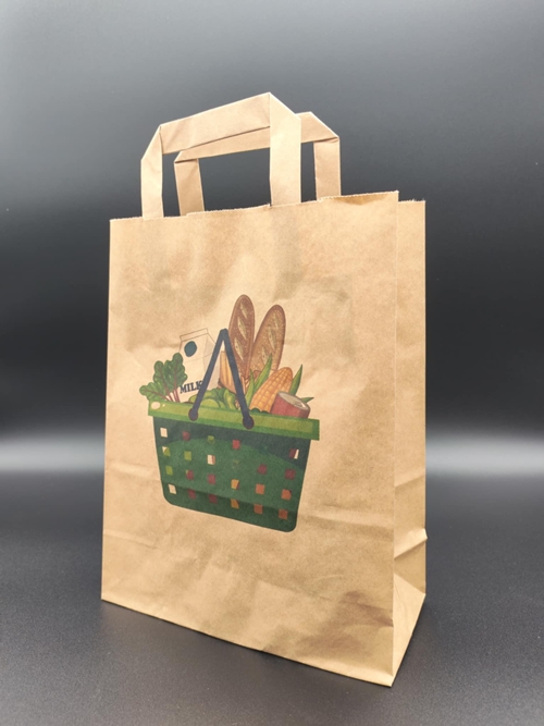 Kezdőlap » Papírtáska » Szalagfüles papírtáska 32cm. x 28cm. x 20cm. 10 db., BARNA, KOSÁR
